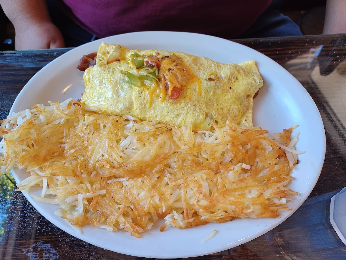 Great food and service. Debra was our waitress. This restaurant is clean, including the bathroom. My husband ordered a veggie omelet and I ordered a Ruben Sandwich. Everything was fresh in the omelet and it came with 2 huge pancakes. They were the biggest fluffy pancakes I've ever tasted! On the table they had four different bottles of hot sauce to choose from. The Ruben Sandwich was several layers thick. I couldn't finish it because It was so large. Best Ruban I ever tasted. She brought me another soda with out my asking, that was a welcomed surprise. I can't wait to bring my kids here when they come to town.
