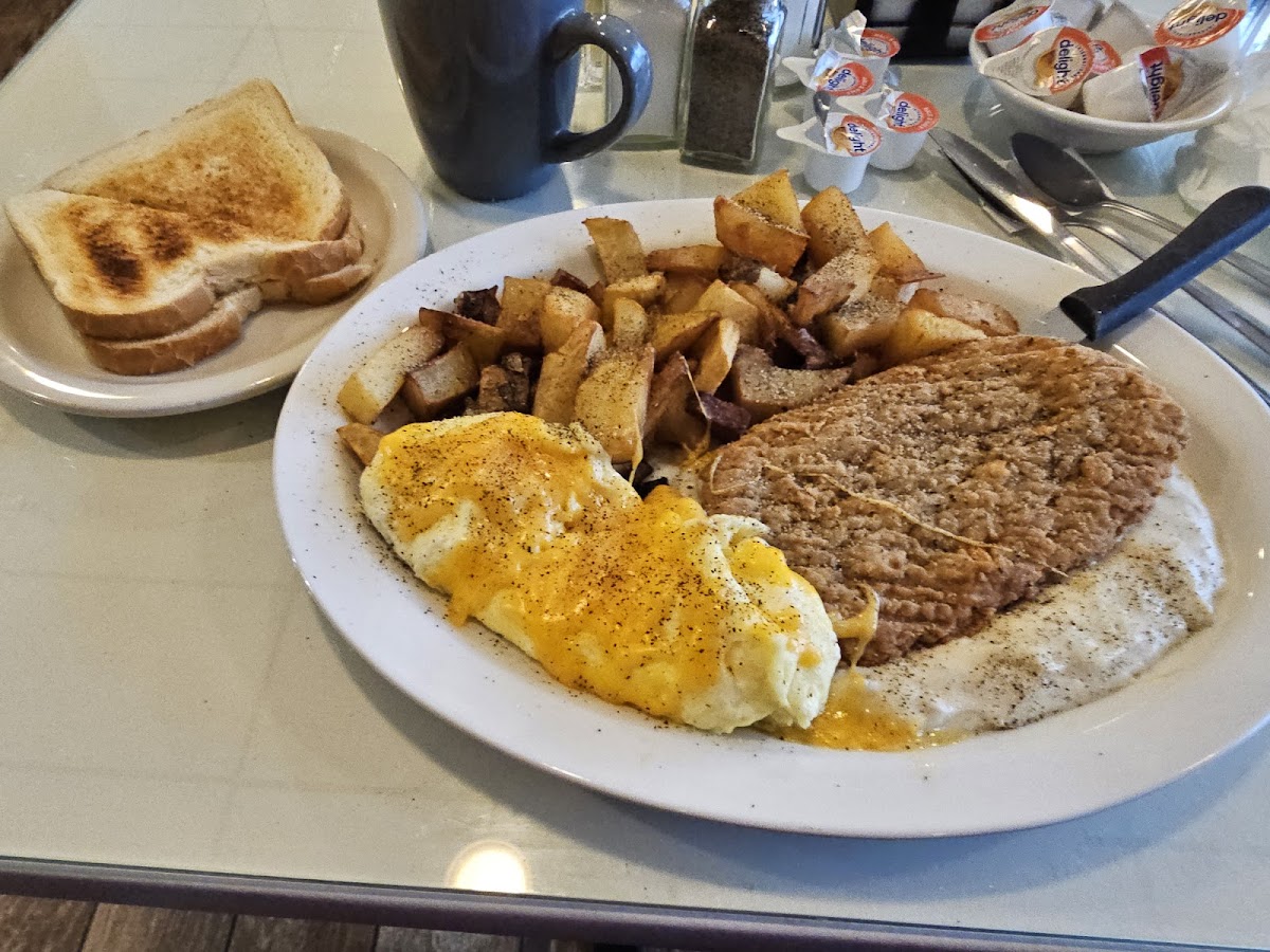 Walked by this place a bunch of times and can’t believe I didn’t know about this gem of a place. The country fried steak was phenomenal. Seasoned and crispy, and was served on top of the gravy! First time I’ve seen that. The real winner was the home fries. Made me feel like I was back in my hometown diners in CT. So wonderful. Our server was the nicest lady, I’ll absolutely be back.