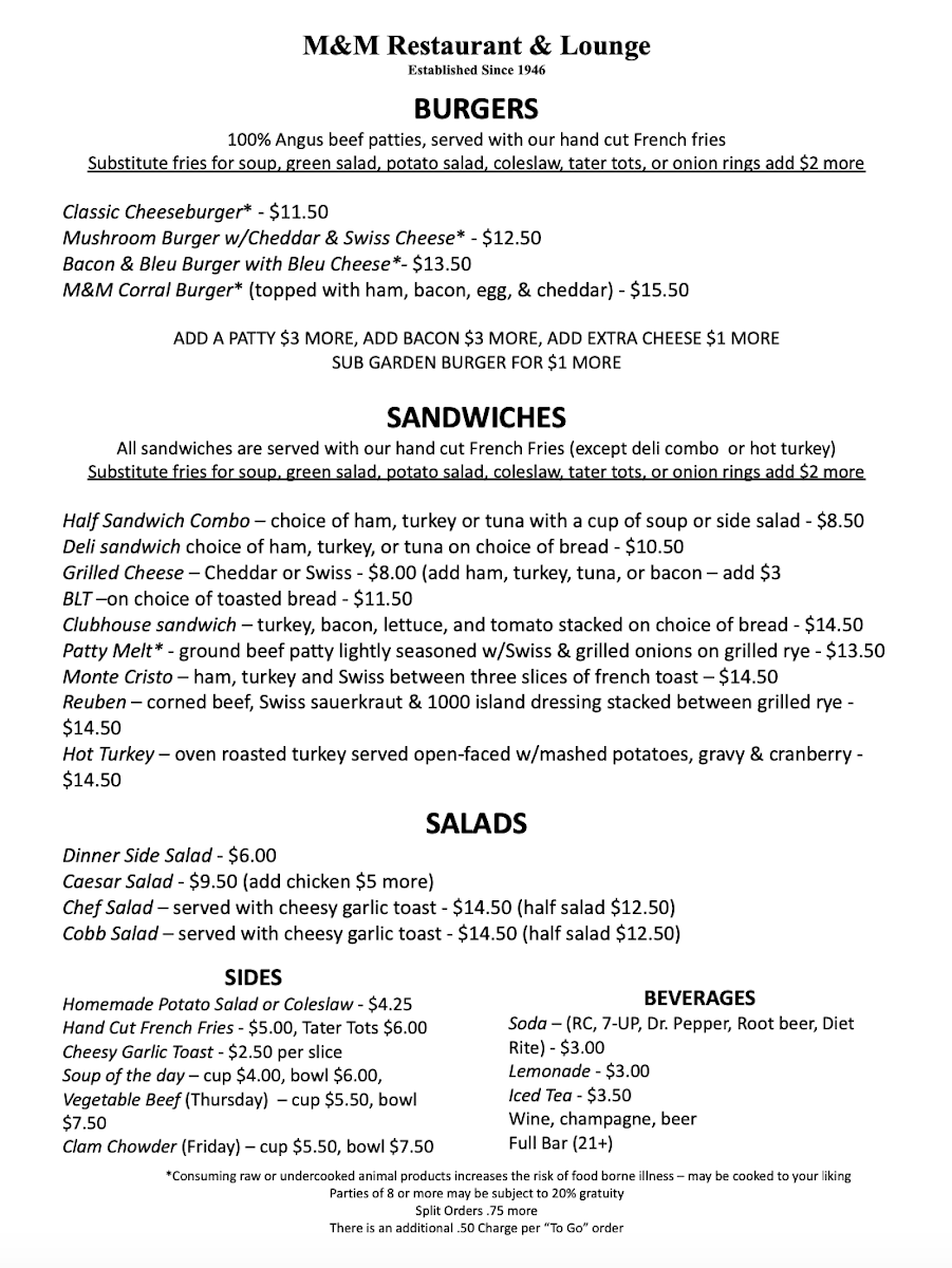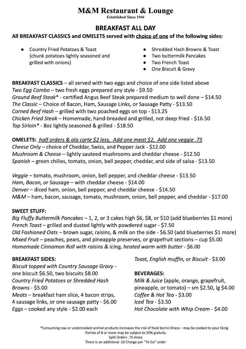 The menu at M & M Restaurant & Lounge offers a straightforward selection of American classics designed for any time of day. Whether you stop by for a hearty breakfast or a casual lunch, you’ll find comforting, familiar dishes that pair well with the lively yet relaxed vibe of the venue.